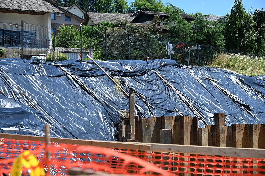 V sklopu ureditev parkirišča je načrtovana tudi gradnja rezervoarja vode oziroma vodohrana, njegova lokacija pa je predvidena pod parkiriščem. Pri izvedbi izkopa za vodohran je prišlo do zdrsa zemljine. Premik zemljine je povzročil manjše razpoke na cestišču. Izvajalec gradbenih del je vse aktivnosti ustavil in zasul gradbeno jamo.